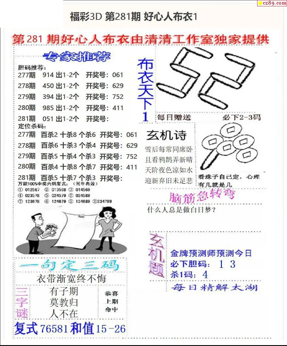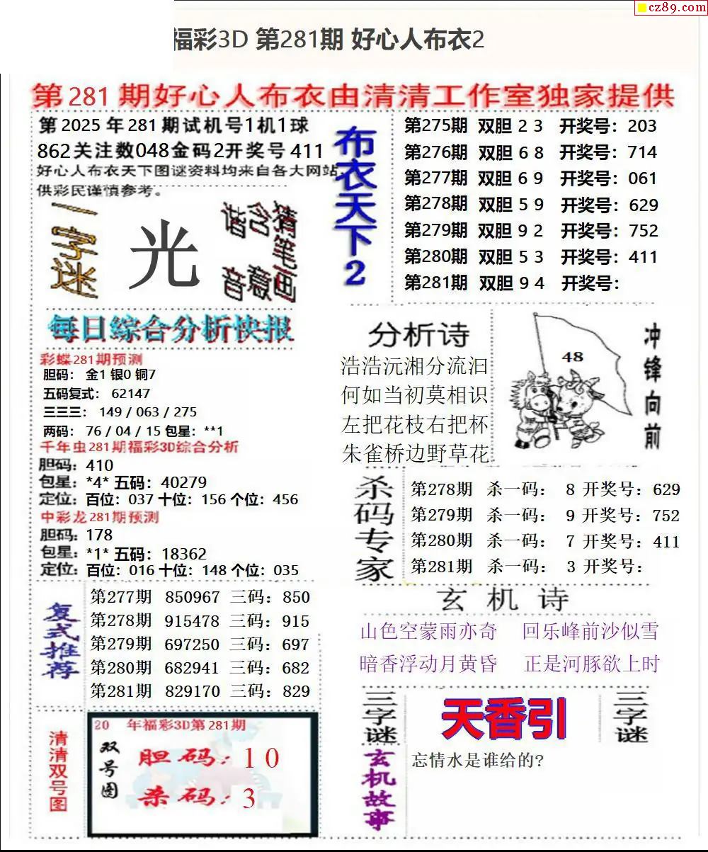 好心布衣2025281期3d图谜