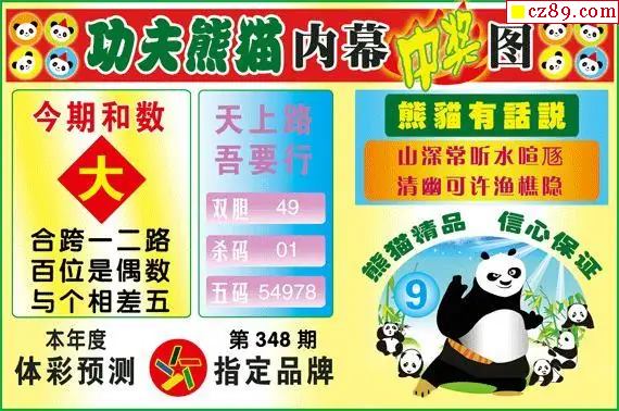 体彩P325年图迷348期 功夫熊猫内幕中奖图